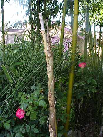 This time of year, when the new bamboo pushes up out of the earth like thrusting spears, is particularly exciting. Every time you look there are new sprouts. Some are growing in the "wrong" place, which is to say where I want something else to grow. I cut them off or kick them over. The other day I cut a little shoot off, peeled off the outer layers and ate the shoot. It was good. I need to remember to grab some for my next stir fry. |