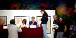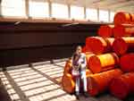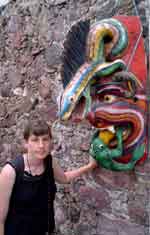 Left: The great Mexico City subway system. I think construction began around 1968. Fantastic system that takes you anywhere for 20 cents. Sometimes it gets a little crowded, but man! One time I suggested, bourgeois that I am, that we grab a cab from the southern bus terminal, because we were carrying a bunch of stuff, but Jose and Elissa agreed that it would just take too long to go by cab instead of taking the Metro. Many of the stations are really interesting. At left is a station called Instituto del Petroleo, decorated with art and benches made from oil drums. People get on and off the crowded cars, selling stuff for a buck: tools, magazines, but mostly cd's. They call out their wares, sometimes in a very melodious chant. Cool t-shirt on the metro: "Los Angeles Si Existe." I was relieved. Los Angeles does exist. But on the back there were angel wings, and I realized it wasn't referring to my home port. Right: Two visits to Mexico City. |