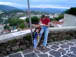Taxco is a picturesque colonial mining town in northern Guerrero, famous to this day for its silver jewelry. We went there just to kick around and site-see. The intercity bus system in Mexico is also wonderful, cheap, frequent and comfortable. When we left the bus, we walked uphill toward the city center, and found a very nice hotel, built around a courtyard with a great old tree in the center. We walked around town, ate, sat in the square, visited the beautiful 17th century church. Vacation for me is a chance to catch up on some reading, and I was enjoying a book my friend Bruce gave me some time ago, THE WANDERING JEWS by Joseph Roth. My last major trip was to Israel, which continues to be a major area of interest for me, and so throughout this trip in a foreign country, reading in my area of current interest, I always had a small feeling of being over in the Mideast, and not Mexico at all. And I'm reading this book on Jews in Europe between the World Wars. And that evening, in the beautiful very Mexican courtyard of the hotel...some guys with yarmulkes! Very disorienting! Elissa said it was a good thing I wasn't reading about the Bush family! |