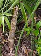 This time of year, when the new bamboo pushes up out of the earth like thrusting spears, is particularly exciting. Every time you look there are new sprouts. Some are growing in the "wrong" place, which is to say where I want something else to grow. I cut them off or kick them over. The other day I cut a little shoot off, peeled off the outer layers and ate the shoot. It was good. I need to remember to grab some for my next stir fry. |