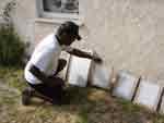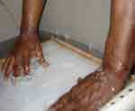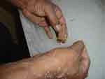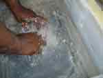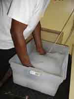 Arnold mixed a cup or two of pulp into about three gallons of waterand stirred it up with his hands.