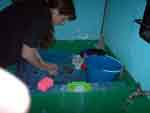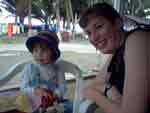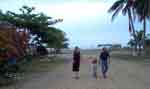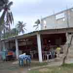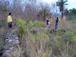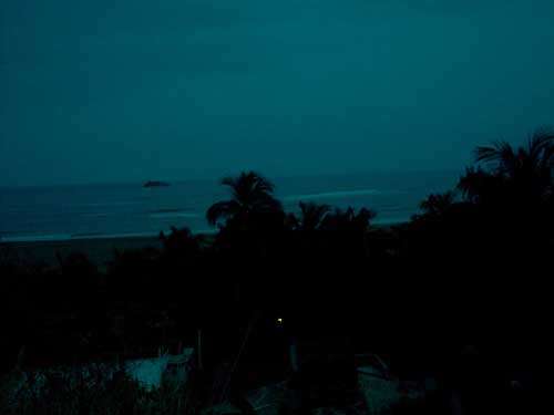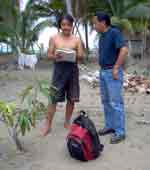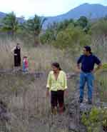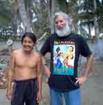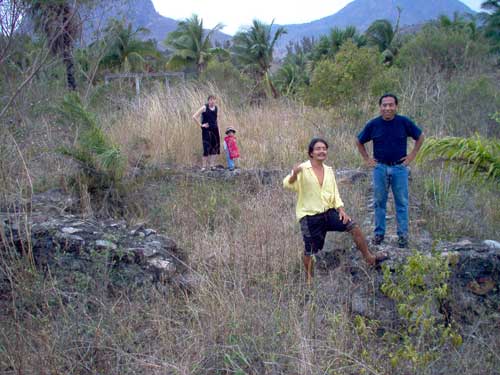 We went down to Villa Rica, a little fishing village on the gulf. I was there ten years ago when I was retracing the Route of the Conquistadors. It's an amazing historic spot that is totally, amazingly neglected. Cortes camped on the beach at what is now the city of Veracruz, and he officially established a town, but it was a legal fiction designed to justify a new course for his expedition. They soon moved up the coast to Villa Rica (La Villa Rica de la Vera Cruz), near the Totanac ceremonial city of Quiahuitzlan. Here Cortes began to get a sense of the power struggles and political realities of Mexico, and of the treasure that waited for him inland. Here he decided to conquer Mexico; here he maneuvered the local people to align with him in rebellion against the Aztecs. Here, in this harbor, Cortes burnt his ships so that there could be no turning back. Also here, Cortes himself, working with his men, carried rocks to build a fort, the first European structure on the North American mainland north of Panama. I was here 10 years ago and I found it, somewhat overgrown, with an old neglected sign. I would not have been able to find it myself this time; it is too overgrown. Apparently, archaeologists worked here a few years before my last visit; since then, no one, and the tropical vines and grasses have reclaimed it. Compare the picture at http://thedagger.com/archive/conquest/villarica.html with the ones on this page. The photos don't really show how much more overgrown it is now. Take my word for it. This spot, one of the most important in world history, is totally neglected! When I was here before, I met a man named Rudolfo who spent the afternoon with us and took us up to the ruins. Even though I only knew his first name and that he was a musician (he had played The Beattles' "Blackbird singing..." on a leaf!), we found him easily, and spent another good afternoon. He played it again: