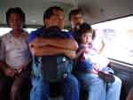 Left: "Iglesia Israeli" Under that: Small bus ("Micro") that goes to and from the Pantitlan Metro Station. Just above the driver on a left is a little cabinet, with little airline liquor bottles. Why? Emergency? Good luck? The driver thought it was cool? Right: Another way to get to the Metro station is by combi, which is basically a minivan set up to seat about 12. I guess it's a little faster than the bus. They each cost about 30 cents. |