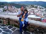 Taxco is a picturesque colonial mining town in northern Guerrero, famous to this day for its silver jewelry. We went there just to kick around and site-see. The intercity bus system in Mexico is also wonderful, cheap, frequent and comfortable. When we left the bus, we walked uphill toward the city center, and found a very nice hotel, built around a courtyard with a great old tree in the center. We walked around town, ate, sat in the square, visited the beautiful 17th century church. Vacation for me is a chance to catch up on some reading, and I was enjoying a book my friend Bruce gave me some time ago, THE WANDERING JEWS by Joseph Roth. My last major trip was to Israel, which continues to be a major area of interest for me, and so throughout this trip in a foreign country, reading in my area of current interest, I always had a small feeling of being over in the Mideast, and not Mexico at all. And I'm reading this book on Jews in Europe between the World Wars. And that evening, in the beautiful very Mexican courtyard of the hotel...some guys with yarmulkes! Very disorienting! Elissa said it was a good thing I wasn't reading about the Bush family! |